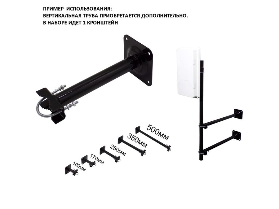 В корзину Купить в 1 клик Кронштейн антенный "Хомутто-700-101101" черный, крепление мачт до 51мм к стене, вылет 0,7м, 32мм