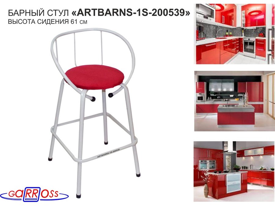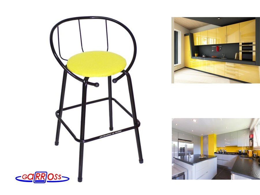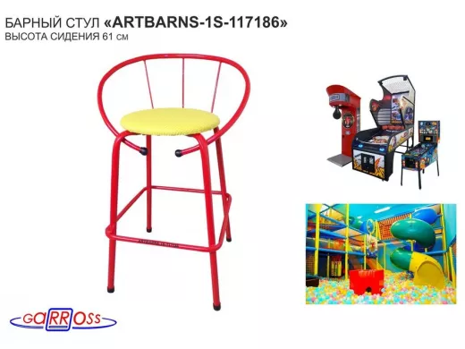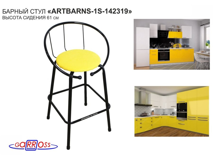 "ARTBARNS 1S-117186" cтул барный, табурет,спинка, высота 0,61м, 22мм,красные ножки/жёлтый верх ткань