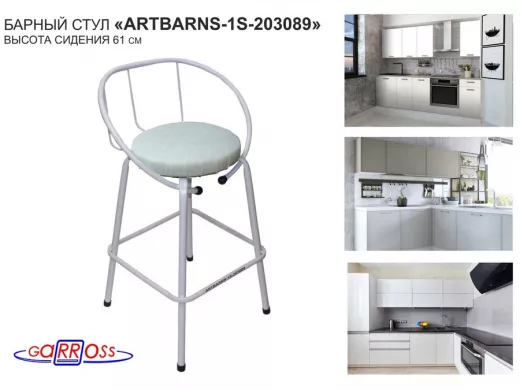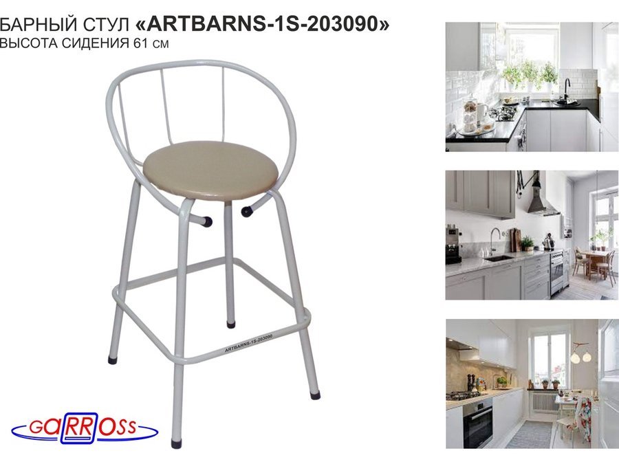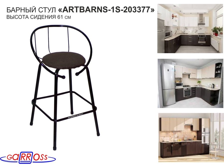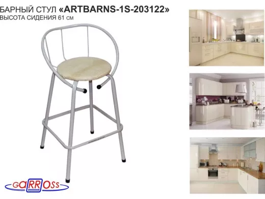 "ARTBARNS 1S-195193" cтул барный, табурет, спинка, высота 0,61метра, 22мм,серые ножки/Вольт 01 ткань