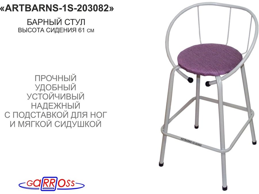 Барный стул "ARTBARNS-1S" органично дополнит интерьер модного заведения или домашней кухни. Стильная модель высотой 0,61 метра устойчиво стоит на четырех опорах с удобными подножками.