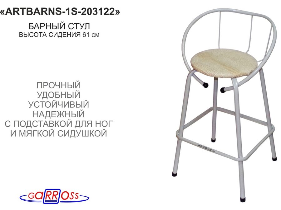 Барный стул "ARTBARNS-1S" органично дополнит интерьер модного заведения или домашней кухни. Стильная модель высотой 0,61 метра устойчиво стоит на четырех опорах с удобными подножками.