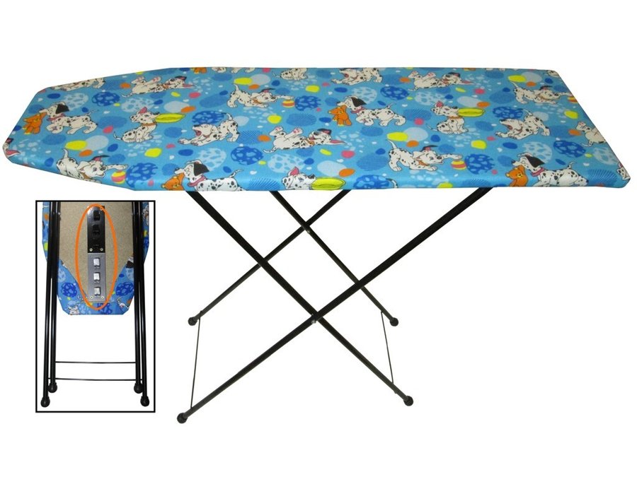 В корзину Купить в 1 клик Доска гладильная "РАДУГА-5" РАСЦВЕТКА-W1641 (синий,ноги ЧЁРНЫЕ) 3 уровня, большой ПОДУТЮЖНИК (в шт)