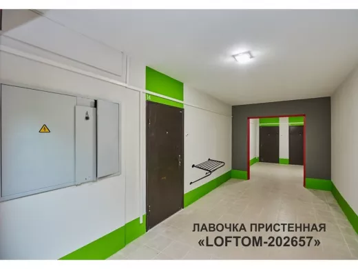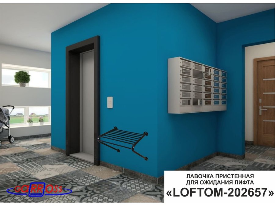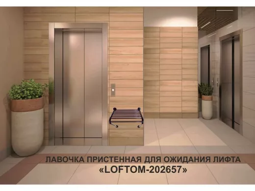 Лавочка пристенная "LOFTOM-202657" табурет для лифта, черный, стул к стене, крепится в подъезде дома