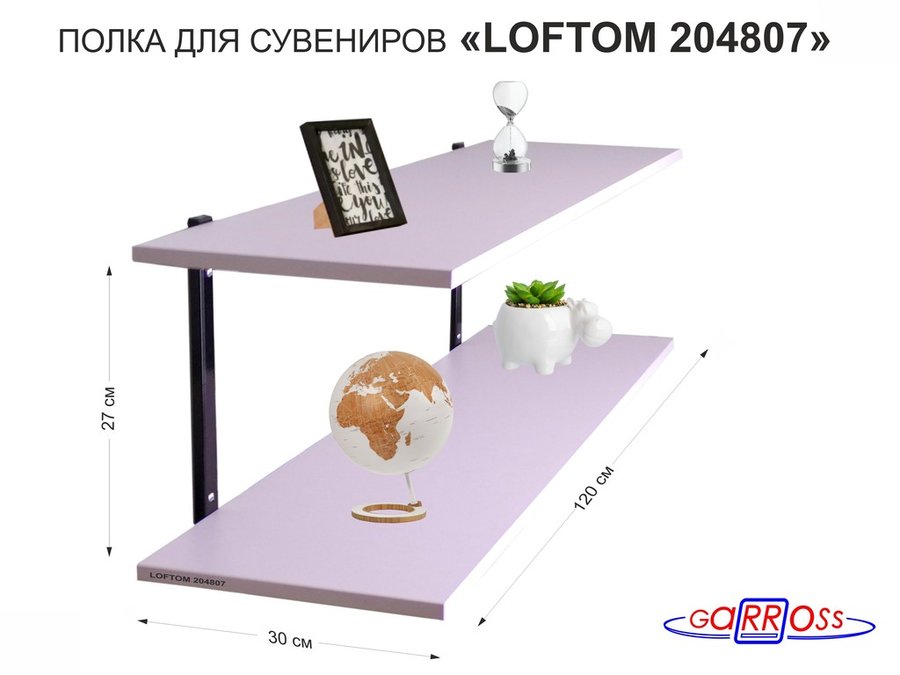 В корзину Купить в 1 клик Полка для сувениров, высота 25см, два уровня "LOFTOM 204807" размер 120х30см, чёрный/лаванда