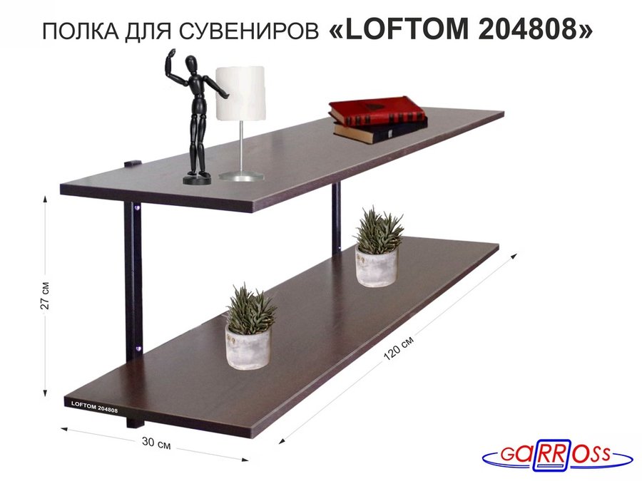 В корзину Купить в 1 клик Полка для сувениров, высота 25см, два уровня "LOFTOM 204808" размер 120х30см, чёрный/венге