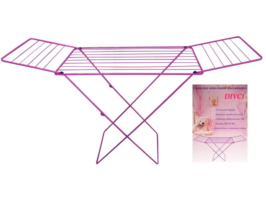 В корзину Купить в 1 клик "БОГАТЫРЬ" DIVCI сушилка напольная РОЗОВАЯ 20 метров, усиленная труба, прочная проволока 4мм !!!