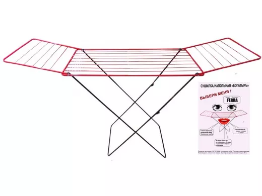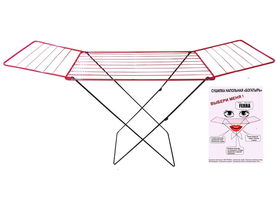 В корзину Купить в 1 клик "БОГАТЫРЬ" FERRA сушилка напольная КРАСНО-ЧЁРНАЯ 20 метров, усиленная труба, прочная проволока 4мм !