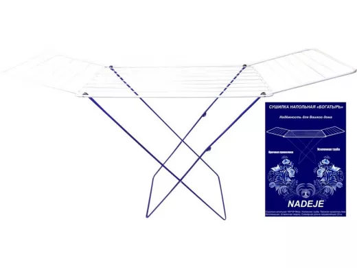 В корзину Купить в 1 клик "БОГАТЫРЬ" NADEJE сушилка напольная БЕЛО-СИНЯЯ 20 метров, усиленная труба, прочная проволока 4мм !