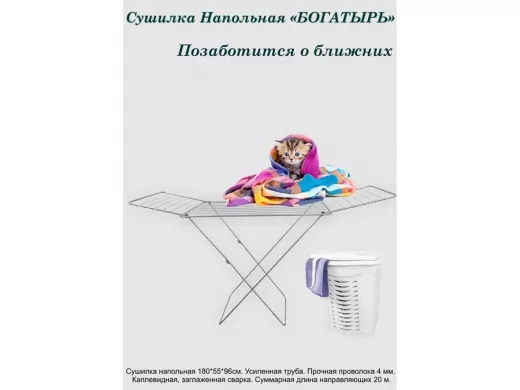 - "БОГАТЫРЬ STYLE - 5" сушилка напольная СЕРЕБРИСТАЯ 20 метров, предназначена для сушки белья