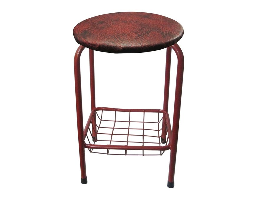 В корзину Купить в 1 клик Табурет с подставкой для ног и корзинкой для вещей "TABURETTO-20419" красные ножки, бордовы, экокожа