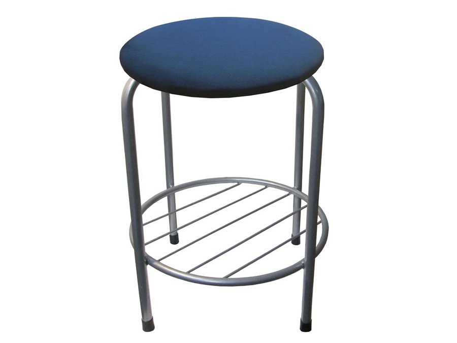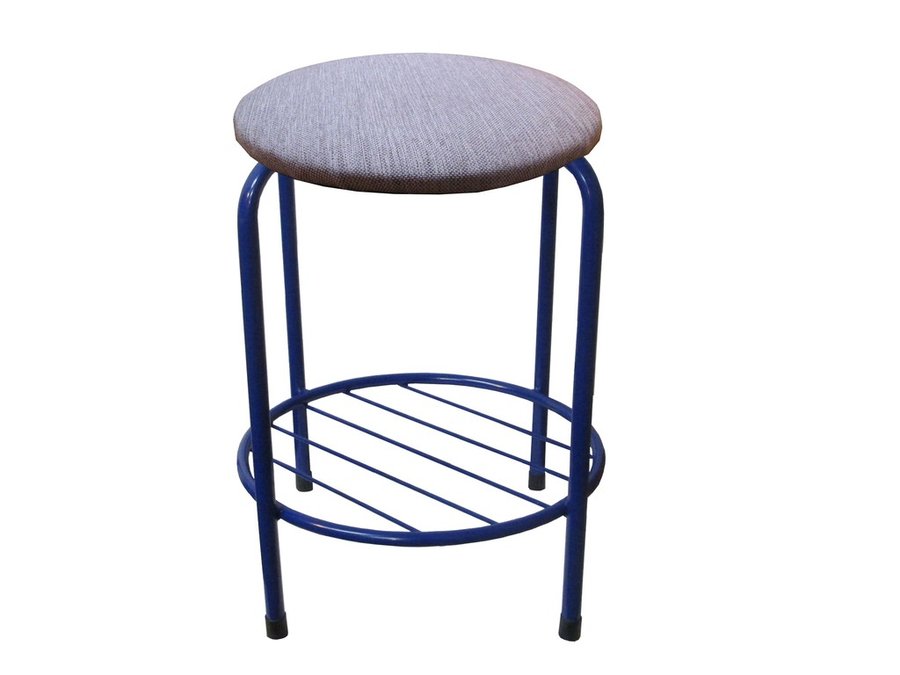 В корзину Купить в 1 клик Табурет с подставкой для ног и полкой "TABURETTO-20470" круглое сиденье, серебристы, синий, ткань