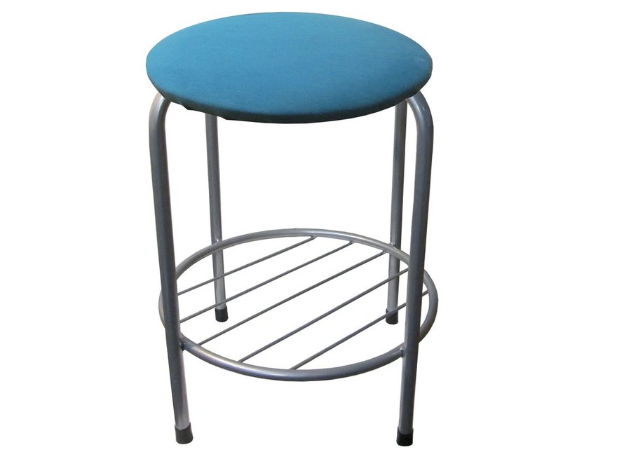В корзину Купить в 1 клик Табурет с подставкой для ног и полкой "TABURETTO-20463" круглое сиденье, серебристый, синий, ткань