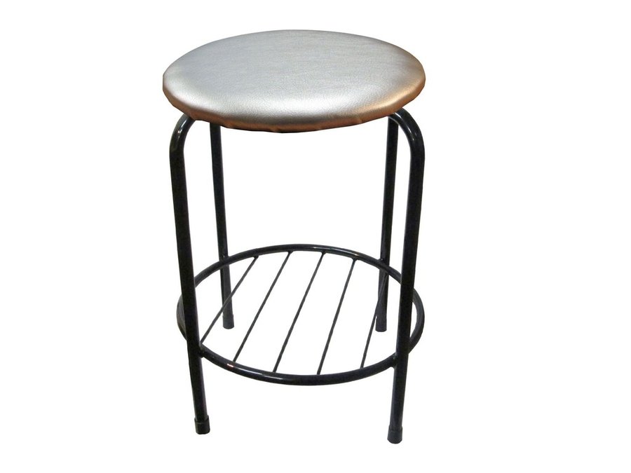 В корзину Купить в 1 клик Табурет с подставкой для ног и полкой "TABURETTO-20479" круглое сиденье, чёрные ножки,серебр,экокожа