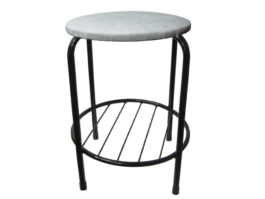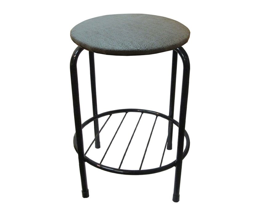 В корзину Купить в 1 клик Табурет с подставкой для ног и полкой "TABURETTO-20489" круглое сиденье, чёрные ножки, серый,экокожа