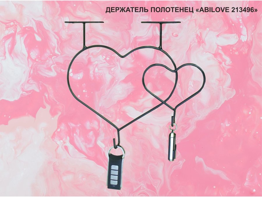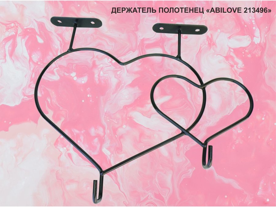 Держатель полотенец под полку, вешалка для вещей, два сердца с крючками, чёрный "ABILOVE-213496"