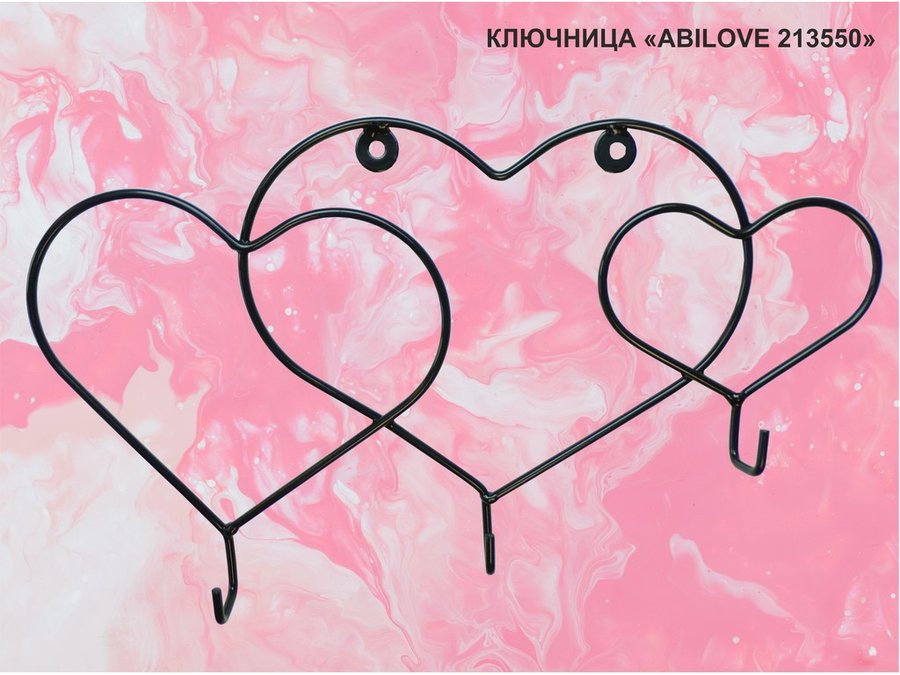 Ключница, держатель полотенец, вешалка в прихожую, три сердца с крючками, чёрный "ABILOVE 213550"