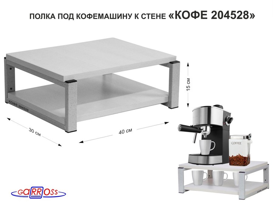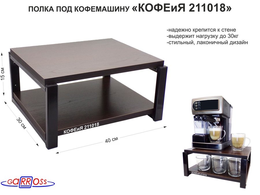 В корзину Купить в 1 клик Полка под кофемашину к стене, высота 17см, серый каркас "КОФЕиЯ 204526" полки 30х40см венге