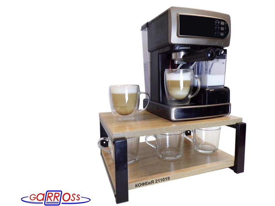 В корзину Купить в 1 клик Полка под кофемашину к стене, высота 17см, черный каркас "КОФЕиЯ 211019" полки 30х40см, дуб