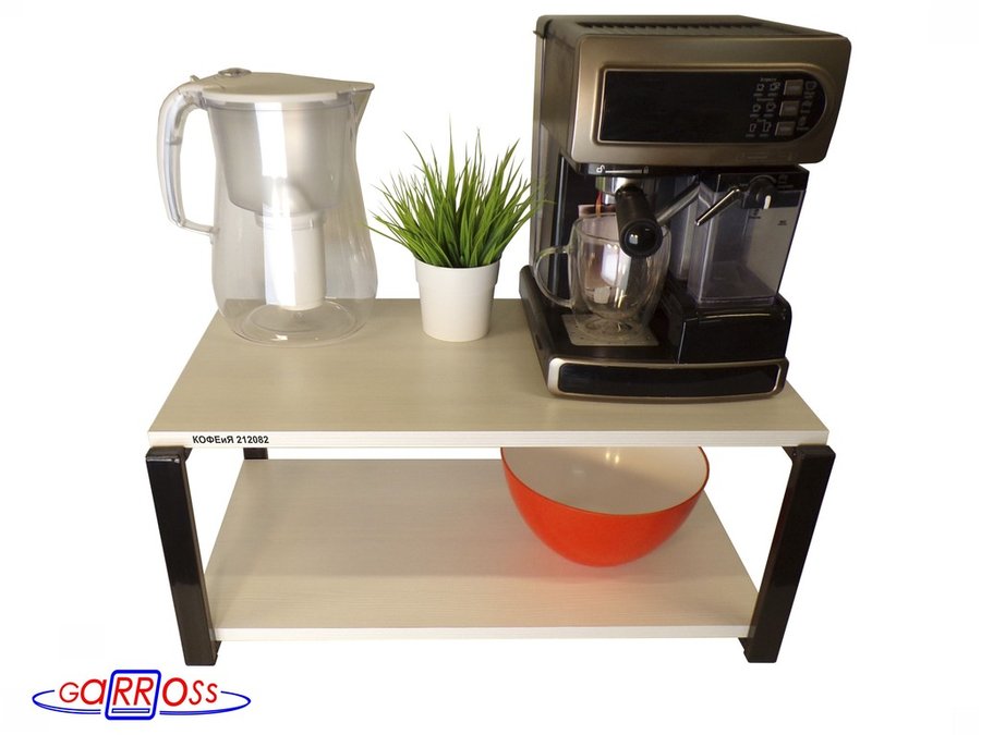 Полка под кофемашину к стене, высота 27см, черный каркас "КОФЕиЯ 212082" полки 30х60см,сосна