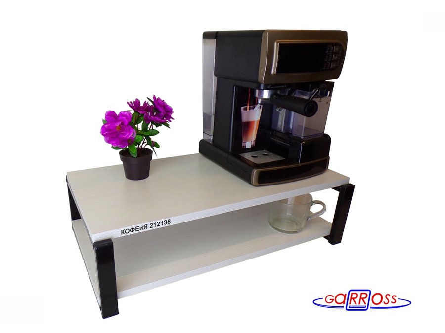 Полка для кофемашины, черная "КОФЕиЯ 212138" высота 17 см, полки 30х60 см, сосна выбеленная,2 ур