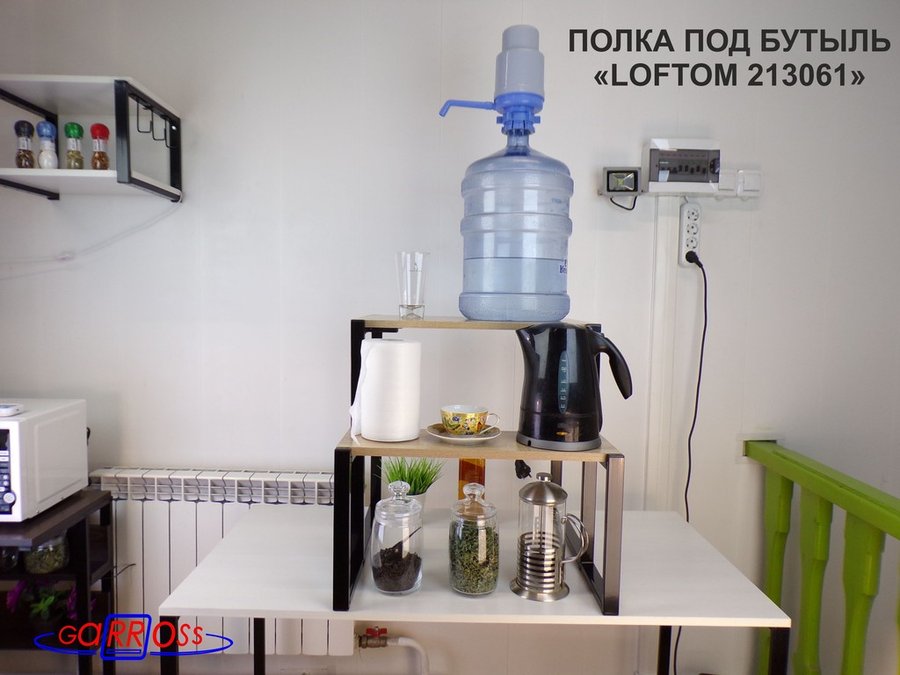 Универсальная подставка (для питьевых бутылей, бытовой техники: микроволновой печи, кофемашины, тостера, электрического чайника и др) позволяет эффективно использовать место на столе.