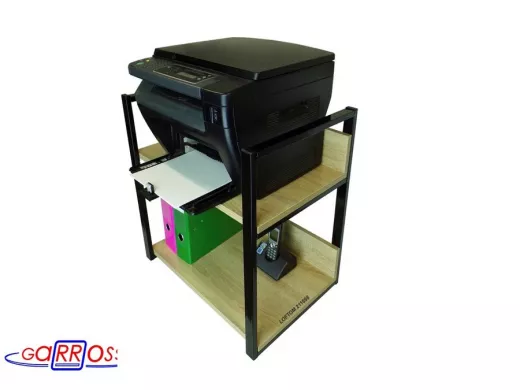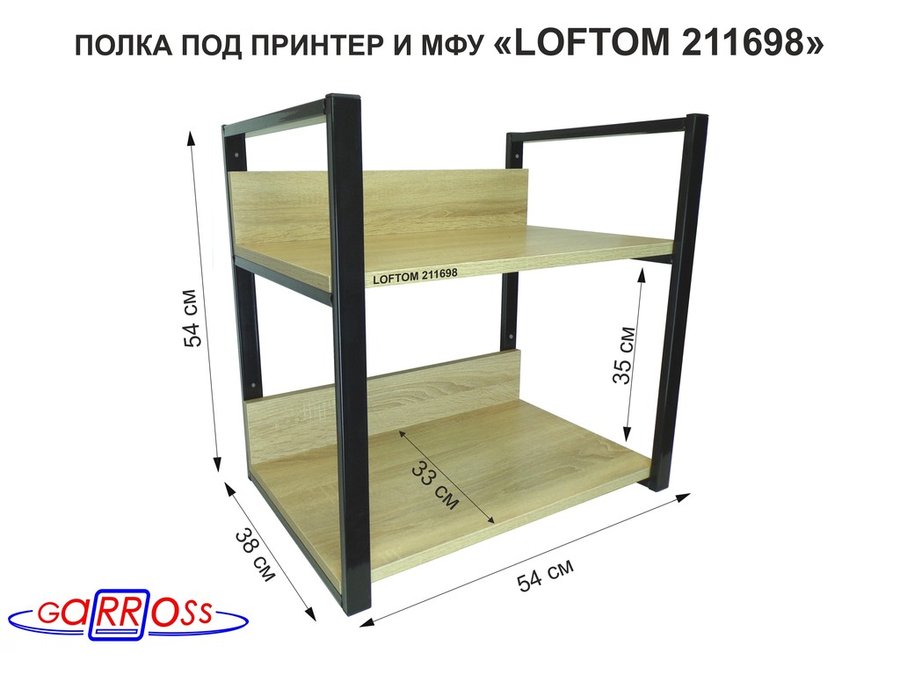 Полка под принтер и подставка для МФУ, высота 54см черная "LOFTOM 211698" 2 уровня, 35х54см, дуб
