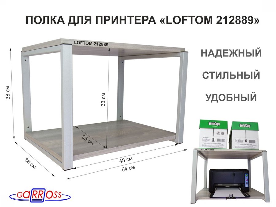В корзину Купить в 1 клик Полка под МФУ или принтер, высота 38см серый "LOFTOM 212889" две полки 35х54см, лофт