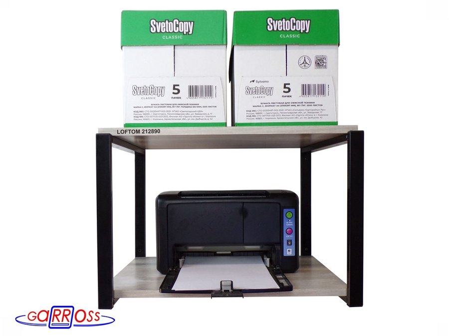 Полка под МФУ или принтер, высота 38см черный "LOFTOM 212890" две полки 35х54см, лофт
