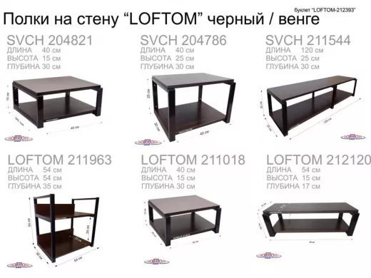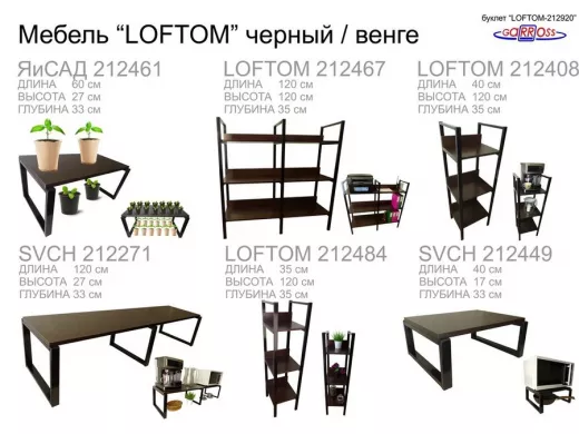 Полка под принтер или МФУ, высота 54см черная "LOFTOM 212904" 2 уровня, 35х54см, венге