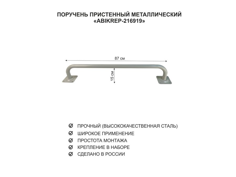 В корзину Купить в 1 клик Поручень пристенный для домов снаружи и внутри, ширина 87см высота 16см "ABIKREP-216919" серый, 32мм