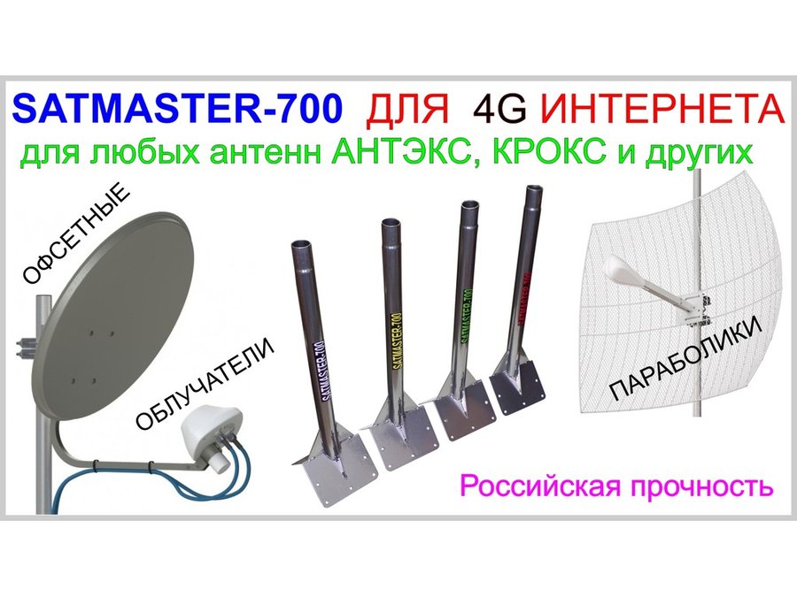 - "SATMASTER-700" СИНИЙ антенный кронштейн предназначен для установки антенн мобильного интернета, спутникового и эфирного цифрового телевидения, антенн радиостанций всех диапазонов. Крепится в самую высокую точку дома на конёк двускатной крыши