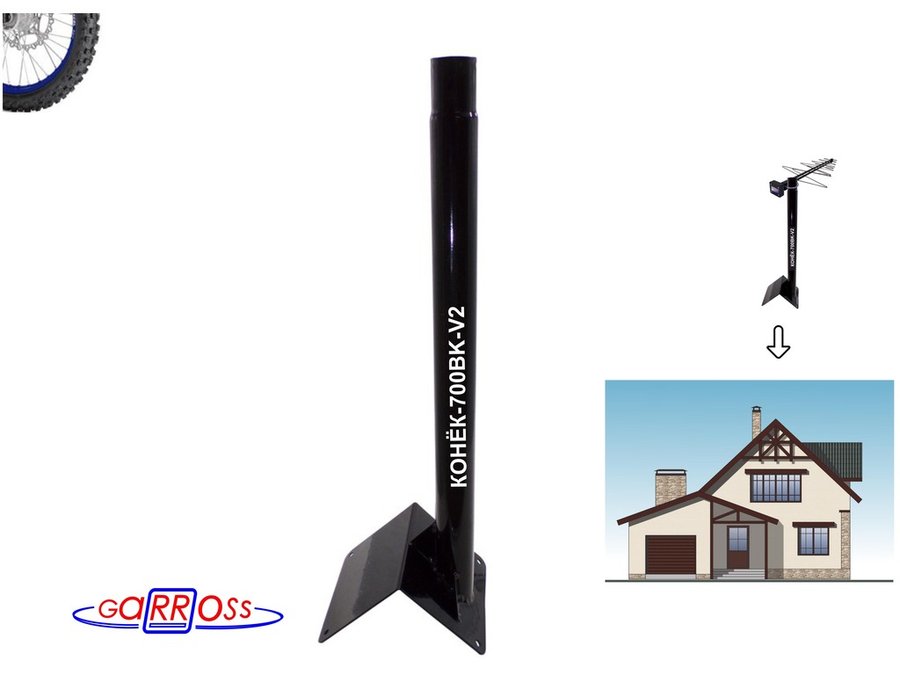 В корзину Купить в 1 клик Кронштейн антенный на конёк крыши "КОНЁК-V2-700BK-92156" черный, высота 70 см, диаметр 50 мм, обжат