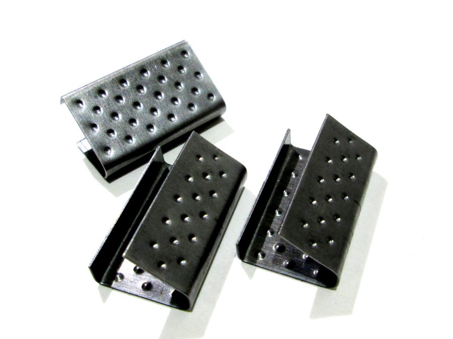 В корзину Купить в 1 клик Скрепа 16х0,5 чёрная для полипропиленовой стрепленты шириной 15мм (цена за 1шт, в упаковке 1000 шт)