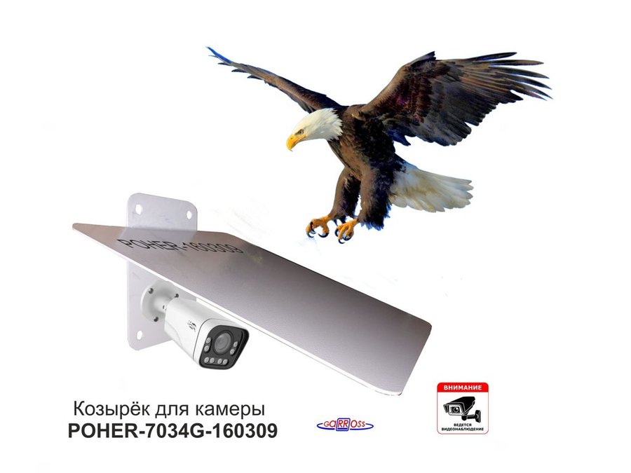 В корзину Купить в 1 клик Кронштейн-козырёк для камеры "POHER-7034S-83526" защита от дождя, солнца, сталь 2 мм, серебристый