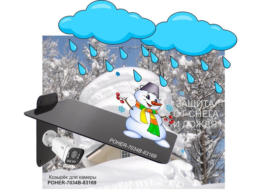 В корзину Купить в 1 клик Кронштейн-козырёк для камеры "POHER-7034B-83169" защита от дождя, солнца, сталь 2 мм, черный