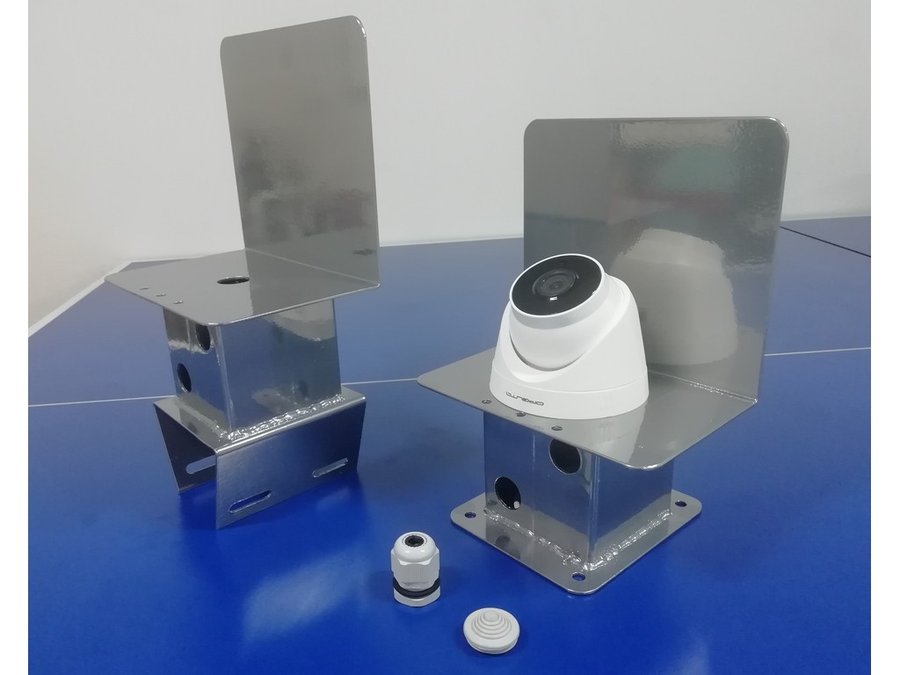 - Полностью из толстой стали кронштейн-коробка для видеокамеры и прожектора.