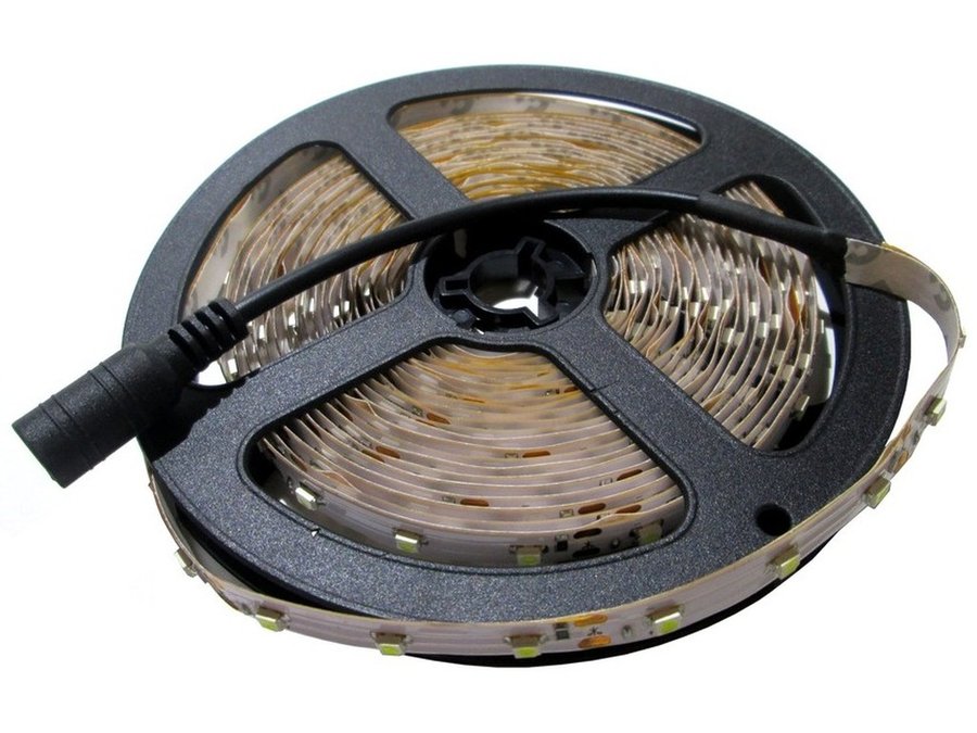 В корзину Купить в 1 клик Светодиодная лента негерм. белая 60 шт./м с гнездом, 4,8Вт/м, 12V (5метров=1,1А), 3528 цена за 5м