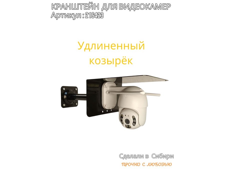 Кронштейн для поворотной камеры с вылетом 25см и большим козырьком "HIWOLL-216423" черный, сталь