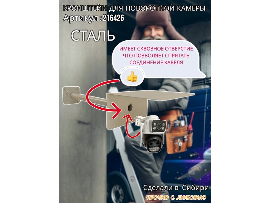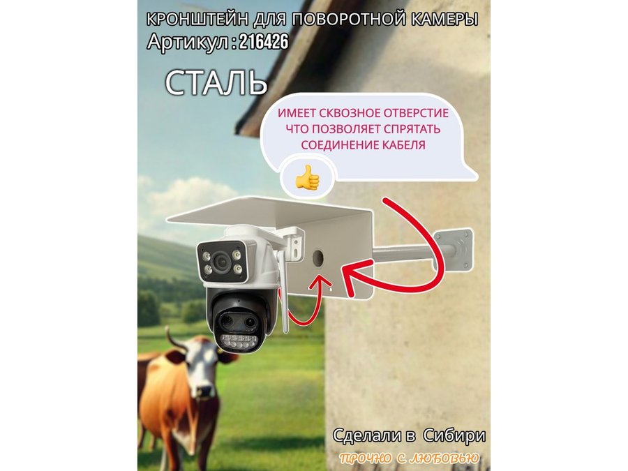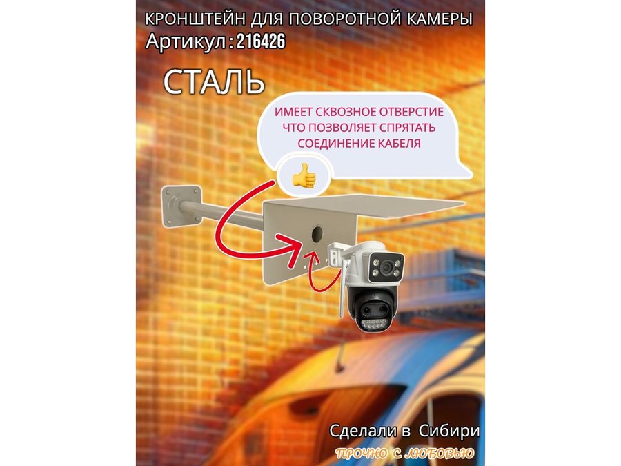 • Стальной кронштейн позволяет вынести камеру от стены на 50 см.