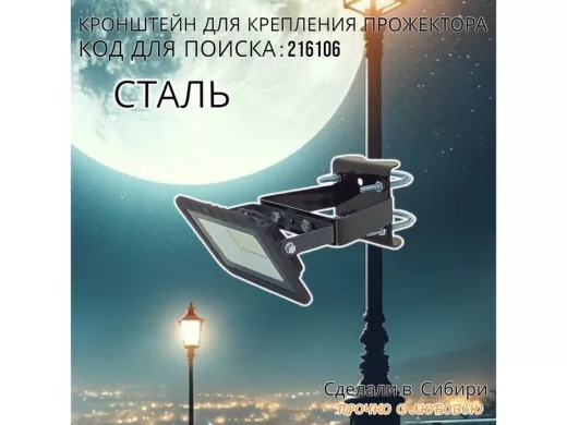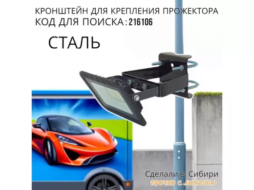 Кронштейн усиленный для крепления прожектора на трубе до 51мм "ПРОЖЕКРЕП-216106" сталь, цвет черный
