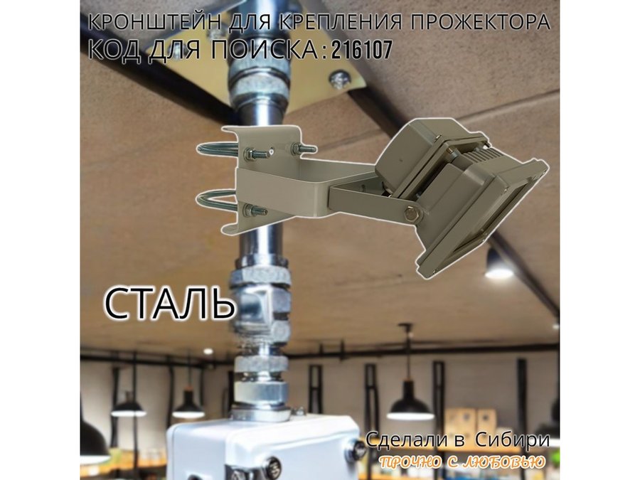 - Кронштейн усиленный предназначен для крепления светодиодных прожекторов на трубе диаметром от 15 до 51мм.