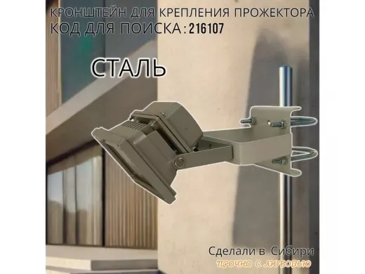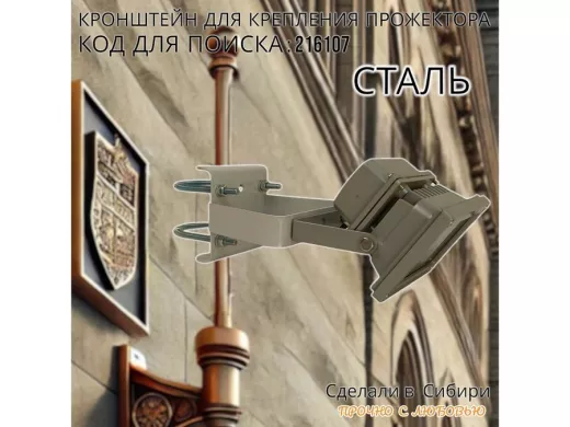 Кронштейн усиленный для крепления прожектора на трубе до 51мм "ПРОЖЕКРЕП-216107" сталь, цвет серый