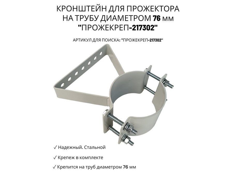 - Кронштейн усиленный предназначен для крепления светодиодных прожекторов на трубе диаметром 76 мм.На трубу крепится с помощью болтов с гайками.