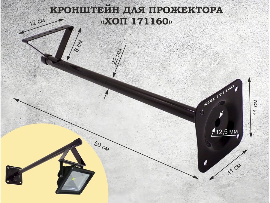 В корзину Купить в 1 клик Кронштейн для прожектора, диаметр 22мм, вылет 0,5 метра "ХОП-171160" черный к стене