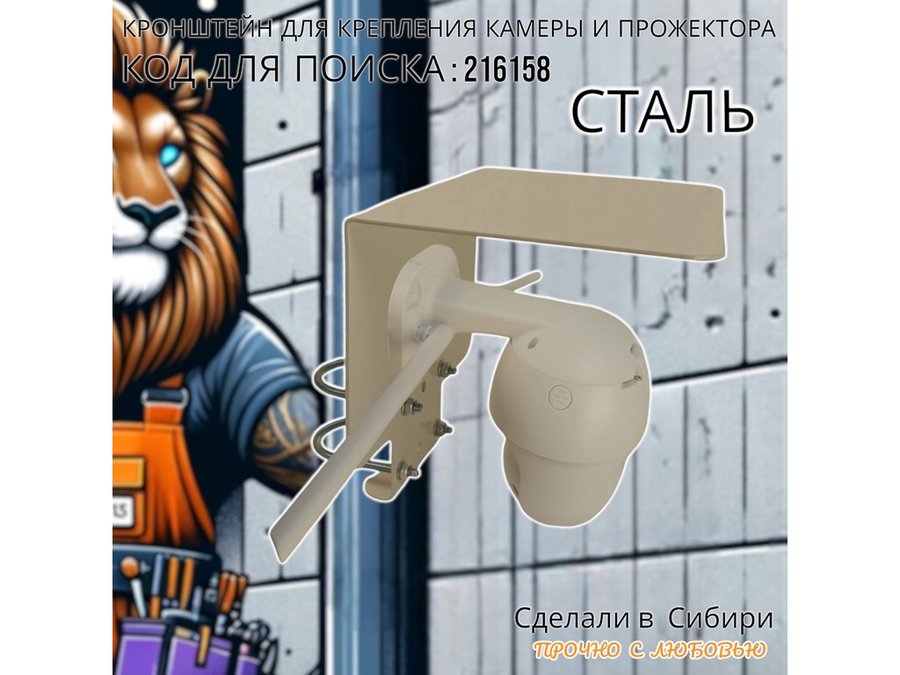 В корзину Купить в 1 клик Кронштейн с козырьком на трубу для камеры и прожектора "ПРОЖЕКРЕП-216158" сталь, два хомута, серый