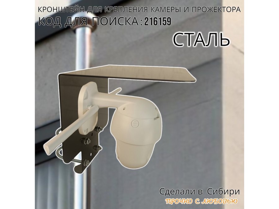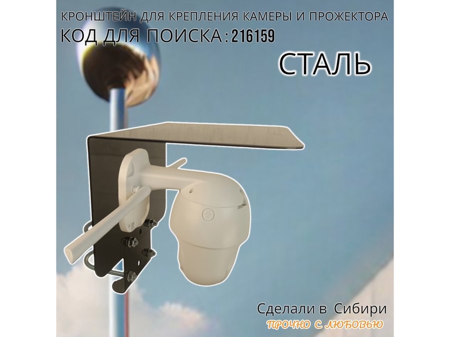 Кронштейн с козырьком на трубу для камеры и прожектора "ПРОЖЕКРЕП-216159" сталь, два хомута, черный