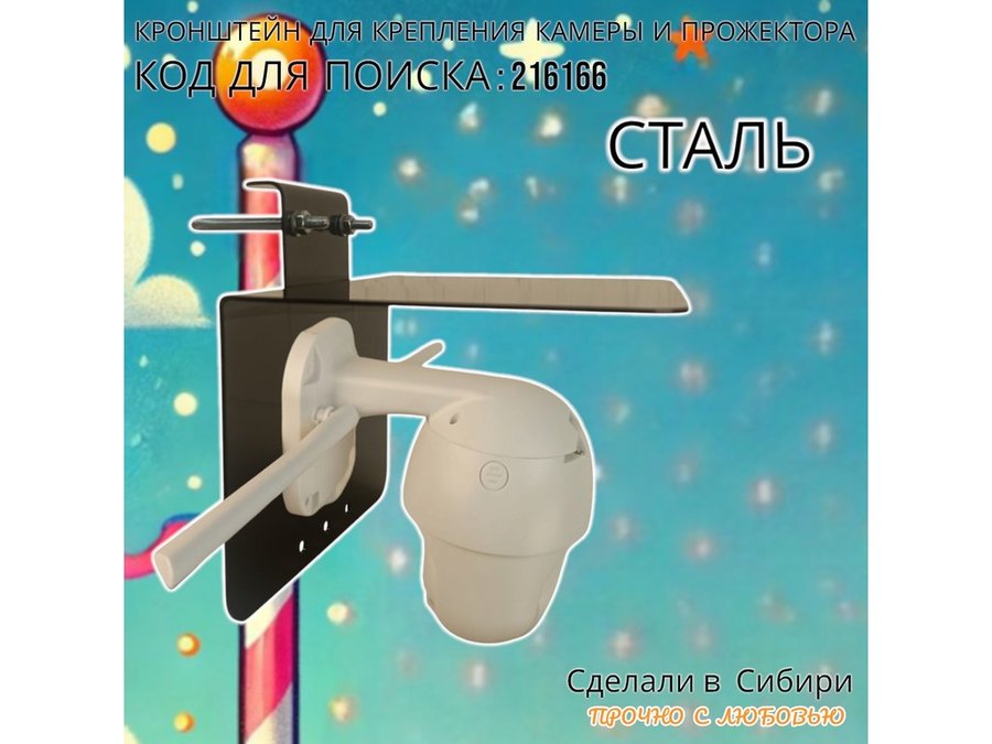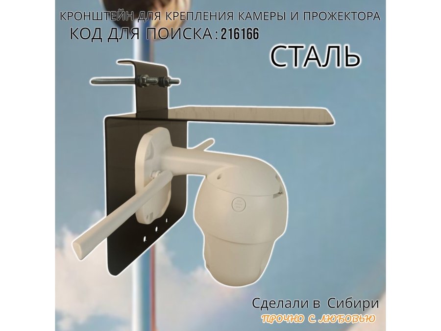 - Кронштейн позволяет быстро зафиксировать прожектор или камеру наблюдения на трубу.