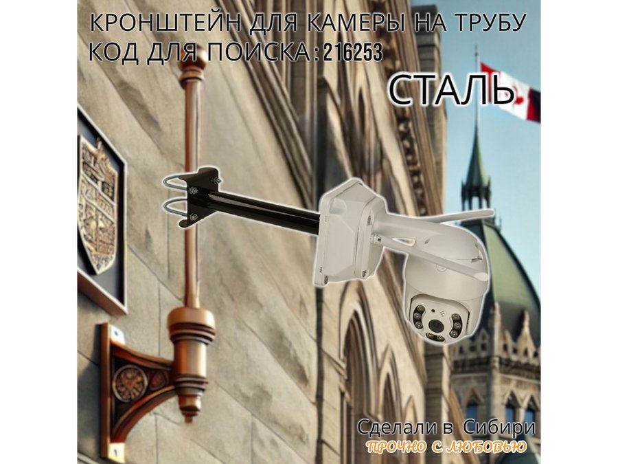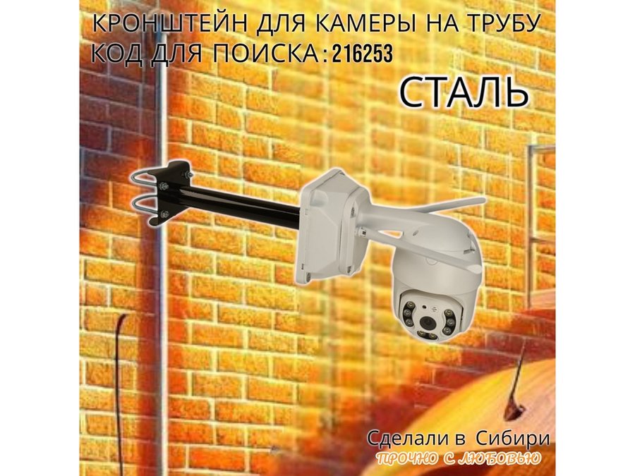 - Кронштейн предназначен для крепления поворотной или цилиндрической камеры на трубу.