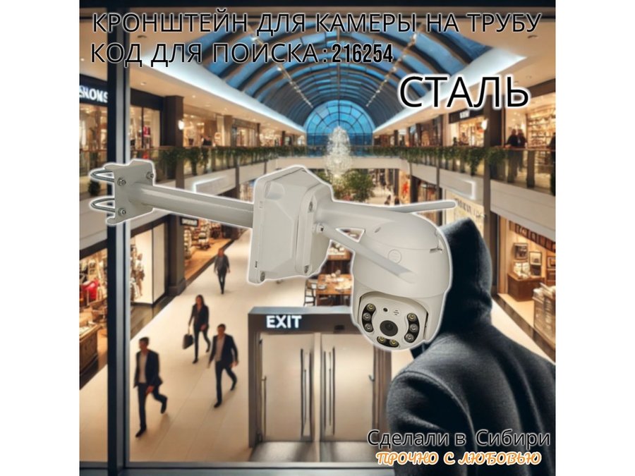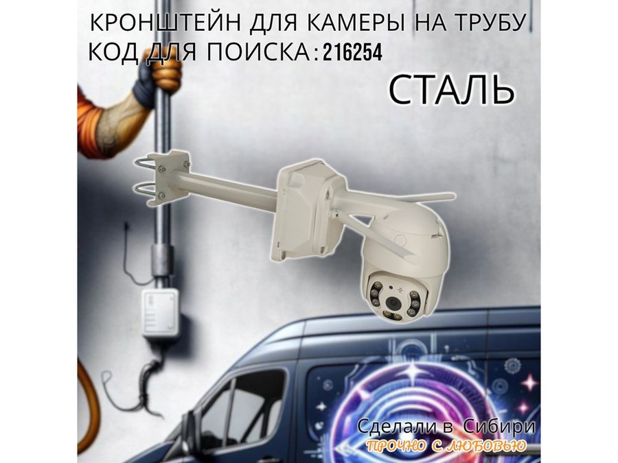 - Кронштейн предназначен для крепления поворотной или цилиндрической камеры на трубу.