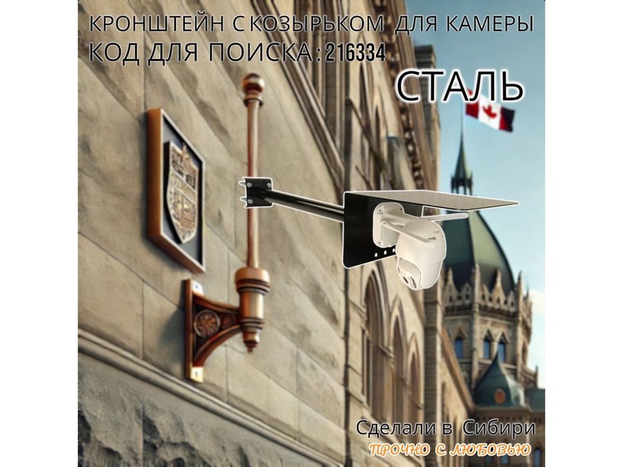 Кронштейн с козырьком для видеокамеры на трубу 15...51мм вылет 50см 24х22см "HIWOLL-216334" чёрный